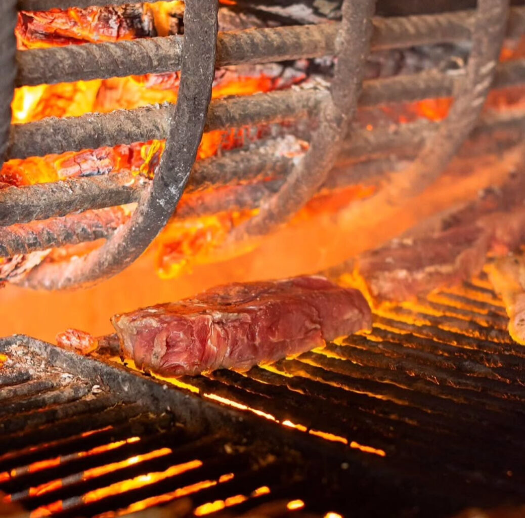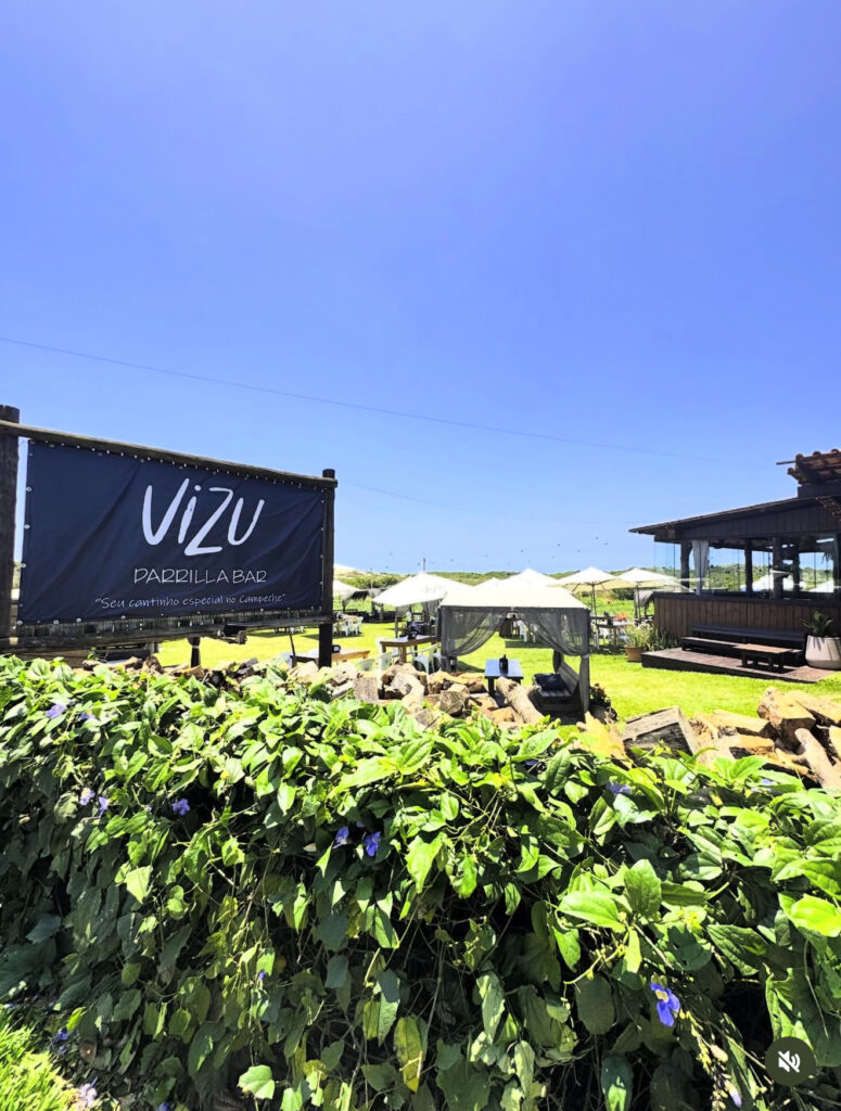 Um espaço ao ar livre com clima de quintal: gramadão verde, mesas externas e atmosfera leve que combina perfeitamente com o verão. O Vizu trabalha com parrilla, carnes e pratos feitos no fogo, mas também tem petiscos e drinks que fazem o combo ideal para longos encontros com amigos.