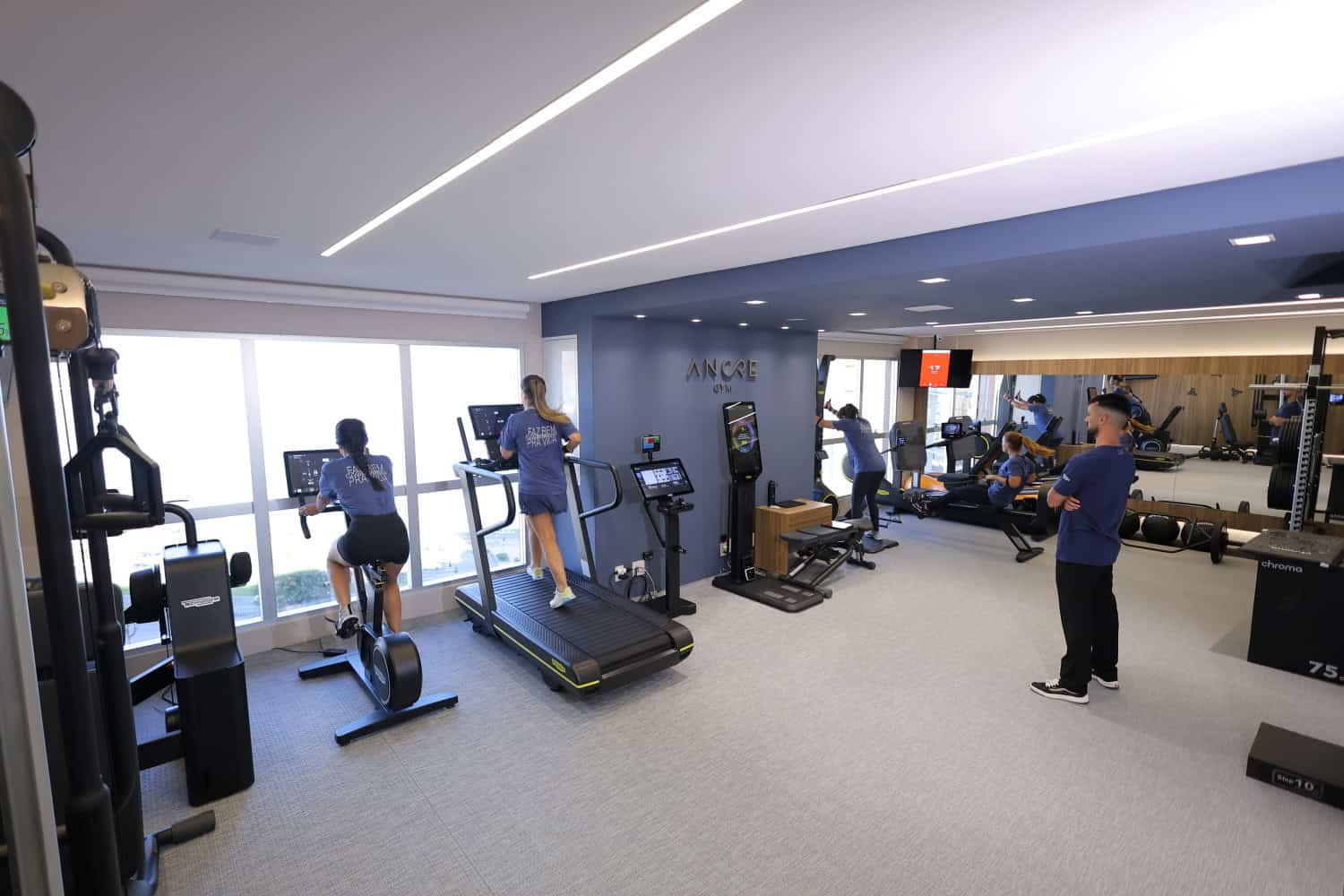 Nesse cenário, surgem academias que repensam completamente a experiência do usuário. Em Florianópolis, a Ancre Gym é um exemplo dessa nova abordagem, oferecendo um espaço exclusivo, com vista para a Beira-Mar Norte e desenhada para reduzir estímulos desnecessários. O ambiente inclui um piso branco desenvolvido com expertise sueca, pensado para ampliar a sensação de amplitude, limpeza visual e foco. De acordo com Fernanda Ebbsen, uma das sócias da Ancre Gym, esses pequenos detalhes influenciam diretamente no conforto e na permanência de quem treina.
