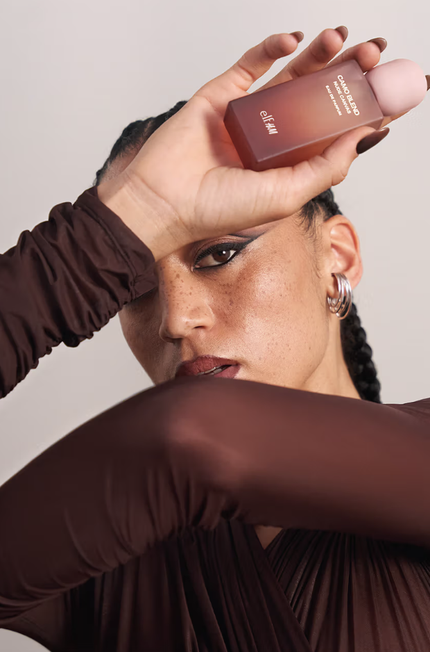 O frasco segue a mesma lógica: design clean, moderno e alinhado à identidade visual da e.l.f., reforçando a proposta de democratizar tendências sem abrir mão de estilo. A colaboração com a H&M também marca um movimento estratégico das duas marcas em direção ao lifestyle, conectando beleza, moda e autoexpressão.