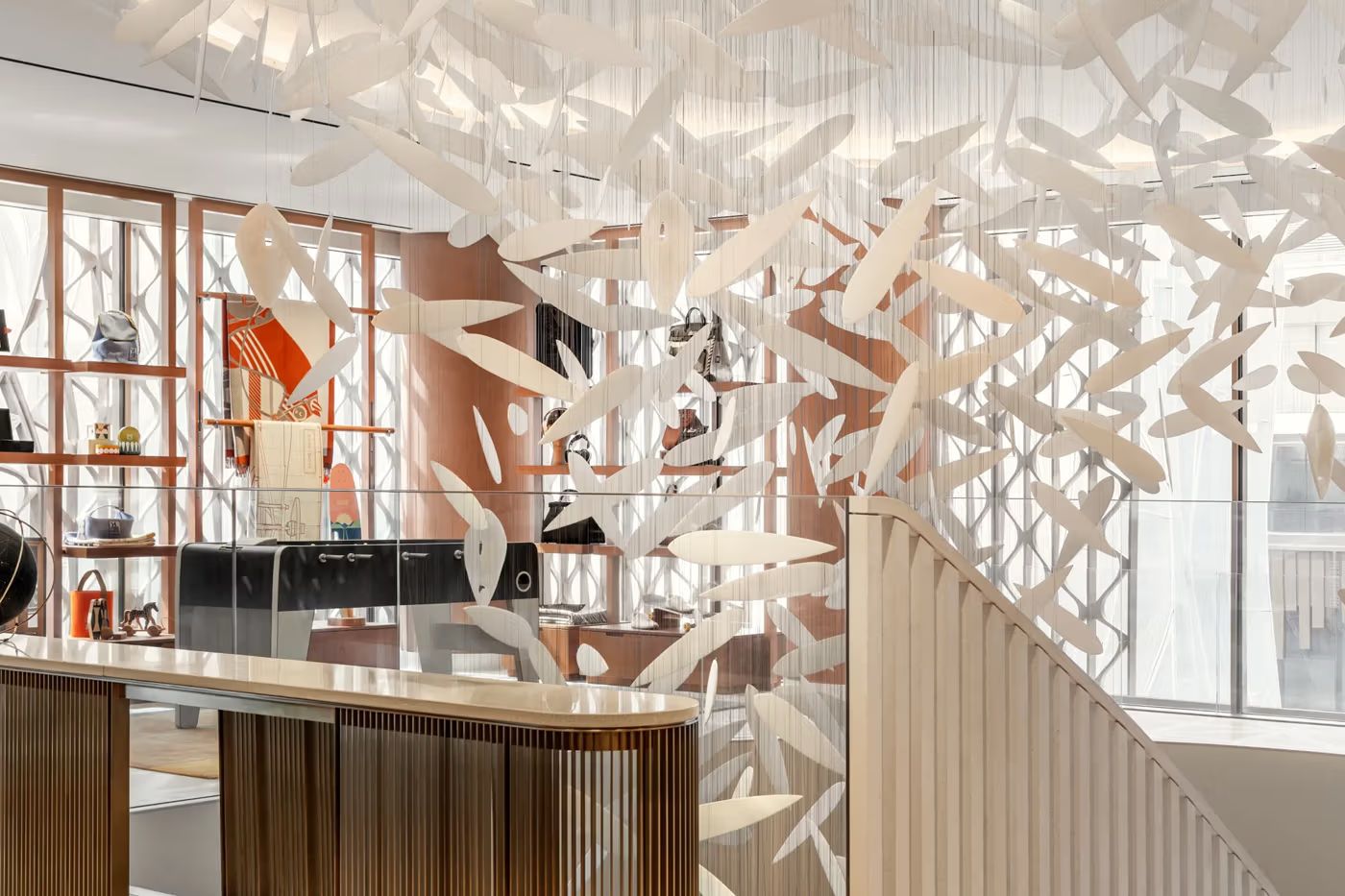 Internamente, a flagship apresenta diferentes ambientes que convidam à descoberta, com áreas dedicadas às principais categorias da marca — moda, acessórios, casa e beleza. Cada detalhe foi pensado para criar uma jornada sensorial, onde o design se torna protagonista e reforça o posicionamento da Hermès como referência em luxo atemporal.