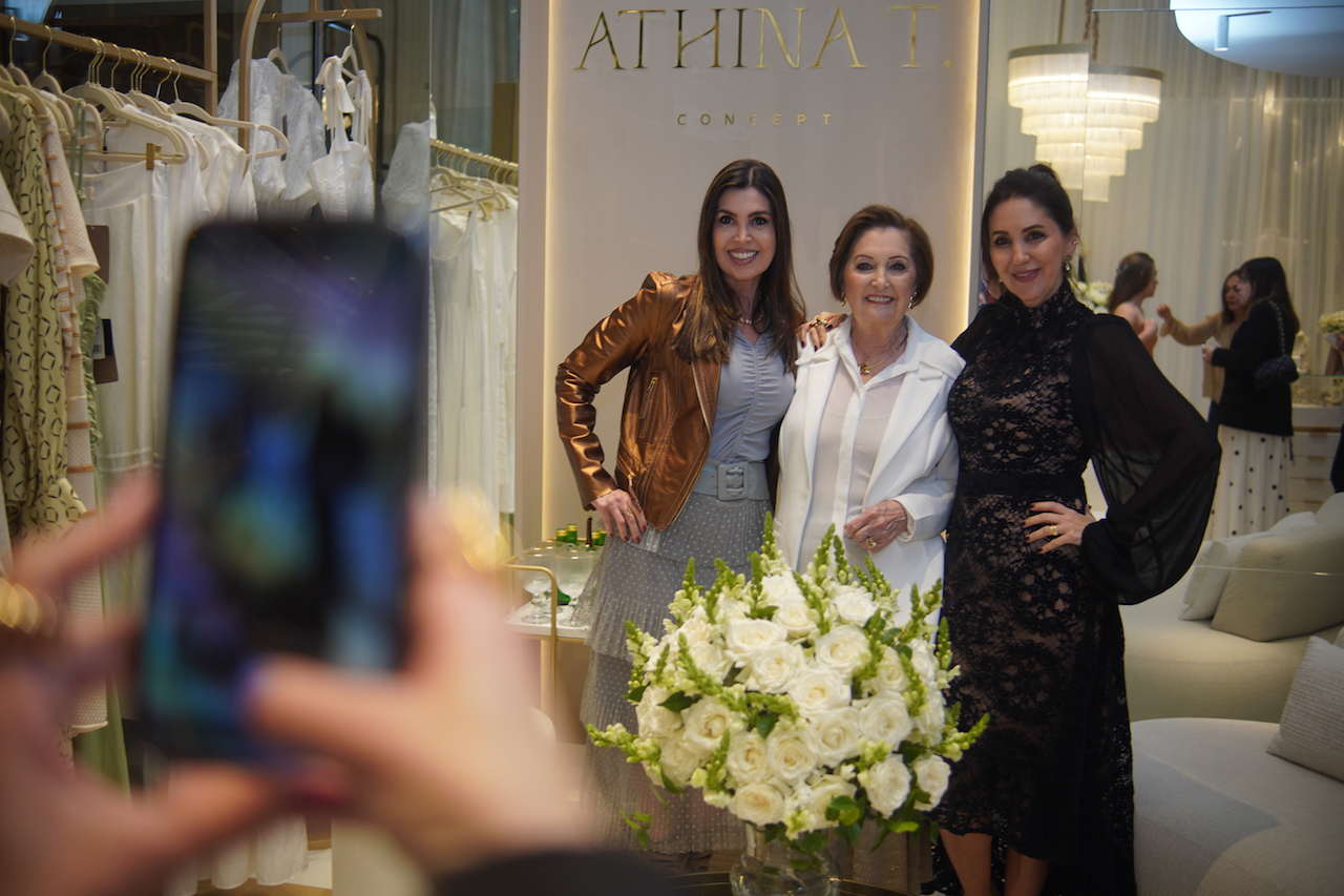 Fabíola Neves recebeu amigos e familiares em noite especial de estreia da loja Athina T. no Centro de Florianópolis, na noite de quarta. Inspirada nas raízes gregas da família, a loja multimarcas tem curadoria afiada, moda atemporal e um projeto arquitetônico super convidativo assinado por Claudia Couto.