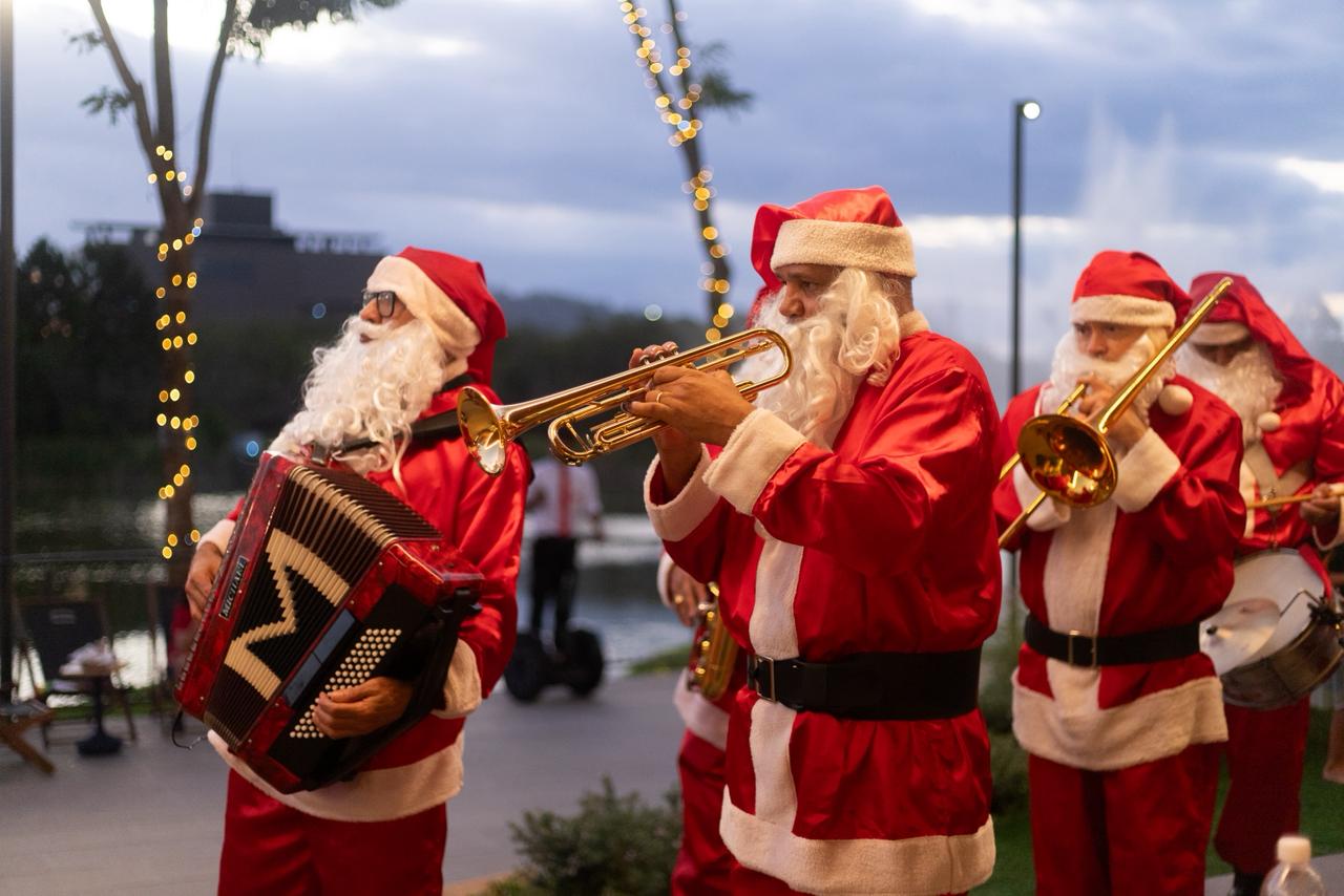 No Passeio Sapiens, na Cachoeira do Bom Jesus, o clima natalino toma conta do espaço a partir de 29 de novembro, quando o musical “O Natal Mágico da Mamãe Noel” abre oficialmente a programação. Ao longo de dezembro, o espaço recebe oficinas de Natal, recreação para crianças, personagens temáticos e apresentações da Banda do Papai Noel. A chegada do Bom Velhinho, no dia 6, será acompanhada pelos Mensageiros de Natal, criando um cortejo especial que transforma o Sapiens em um ponto de encontro para as famílias da região.