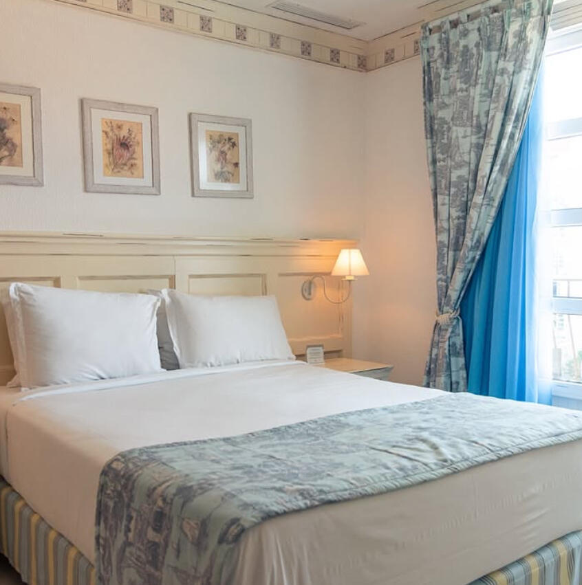 Os quartos são amplos e oferecem vistas deslumbrantes. Além disso, o resort fica a poucos passos da praia e ao lado do Open Shopping, garantindo uma experiência completa de lazer e sofisticação.